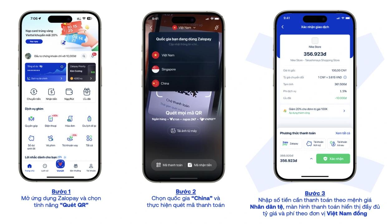 Ngày 17/9, Zalopay chính thức công bố tính năng Quét QR quốc tế vừa được triển khai tại thị trường Trung Quốc. Từ nay, người dùng Việt Nam khi đi du lịch hay công tác tại quốc gia này đều có thể dễ dàng thanh toán trực tiếp bằng ứng dụng Zalopay, từ các trung tâm thương mại, điểm tham quan, nhà hàng cho đến các cửa hàng nhỏ lẻ.